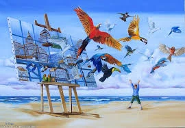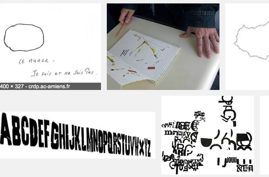 on peut partir d’ images choisies, piochées, crées, de techniques d’arts plastiques et en faire jaillir des mots