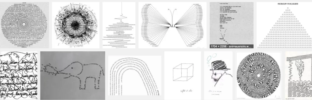 on peut partir d’ images choisies, piochées, crées, de techniques d’arts plastiques et en faire jaillir des mots
